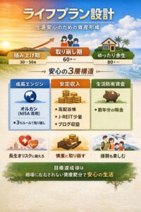 - ② 高配当ETFやJ-REITへシフト:配当・分配金を受け取りながら生活費を補う方法